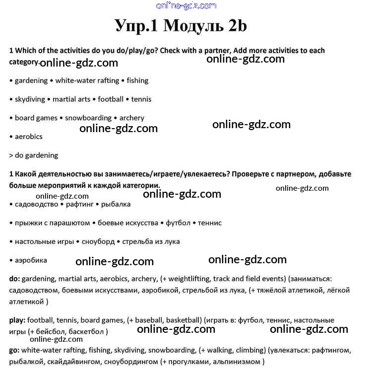 Готовые домашние задания по Английскому языку за 10 класс Учебник Афанасьева, Дули Spotlight 2015 - Часть 2b Module 2 1