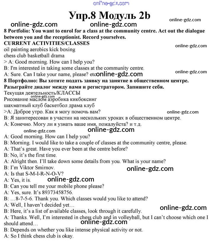 Готовые домашние задания по Английскому языку за 10 класс Учебник Афанасьева, Дули Spotlight 2015 - Часть 2b Module 2 8