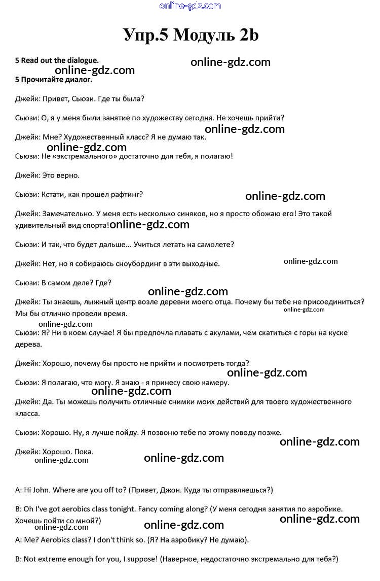 Готовые домашние задания по Английскому языку за 10 класс Учебник Афанасьева, Дули Spotlight 2015 - Часть 2b Module 2 5