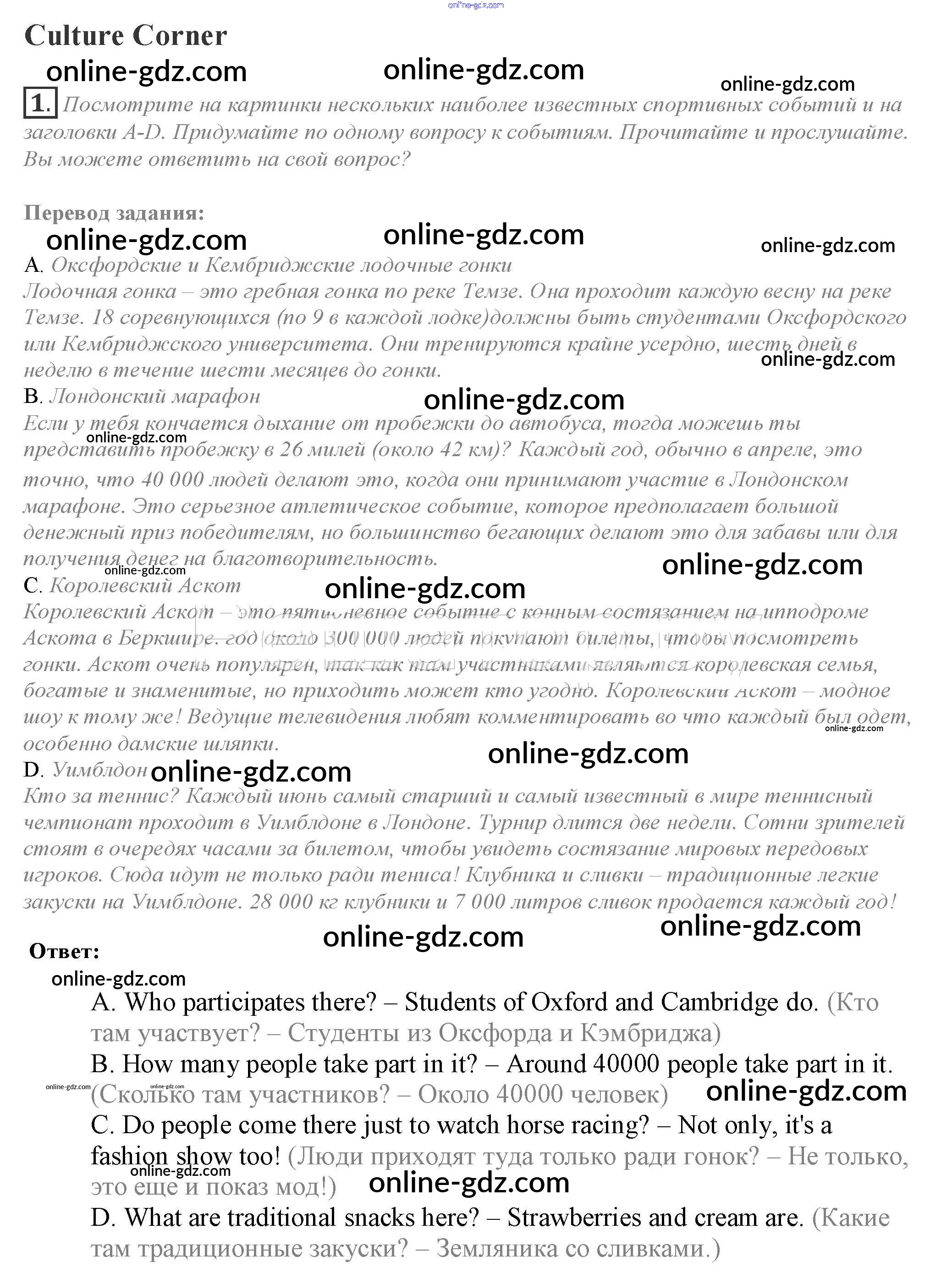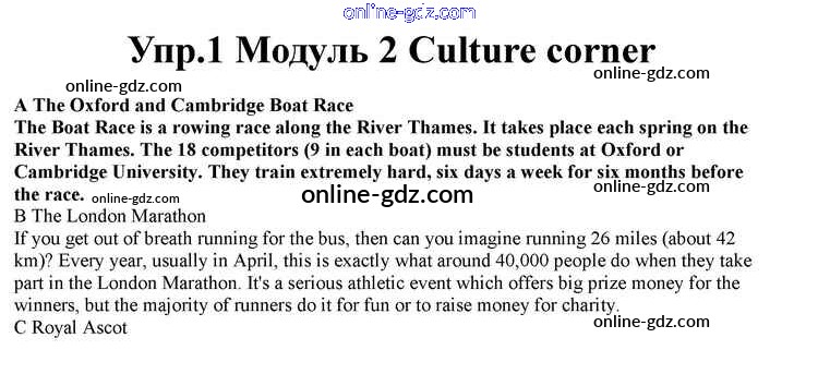 Готовые домашние задания по Английскому языку за 10 класс Учебник Афанасьева, Дули Spotlight 2015 - Culture corner Module 2 1