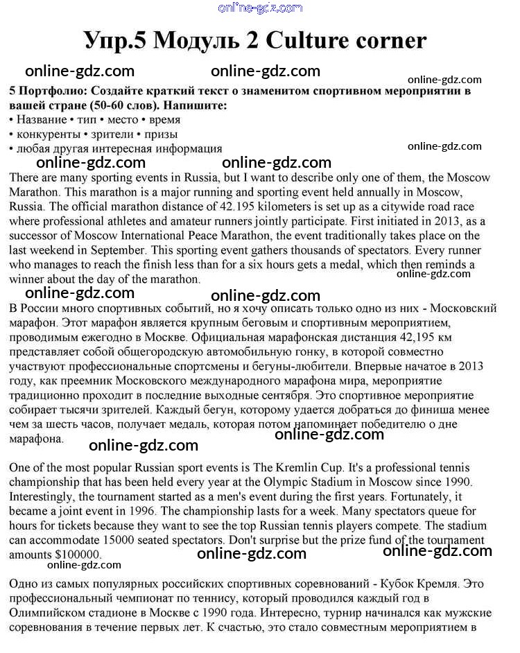 Готовые домашние задания по Английскому языку за 10 класс Учебник Афанасьева, Дули Spotlight 2015 - Culture corner Module 2 5