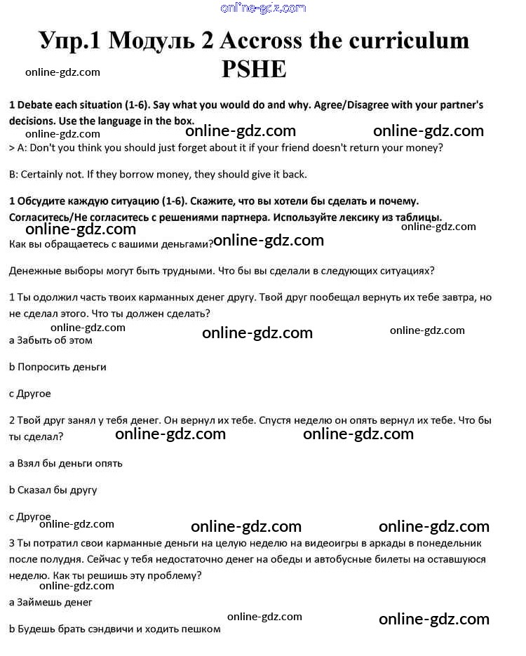 Готовые домашние задания по Английскому языку за 10 класс Учебник Афанасьева, Дули Spotlight 2015 - Accross the curriculum PSHE Module 2 1