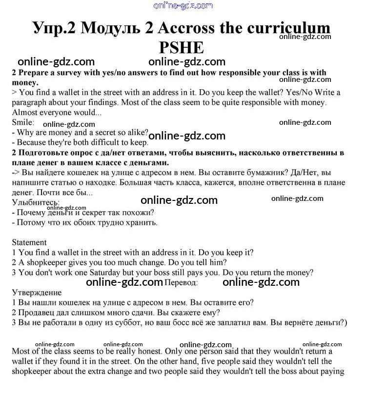 Готовые домашние задания по Английскому языку за 10 класс Учебник Афанасьева, Дули Spotlight 2015 - Accross the curriculum PSHE Module 2 2