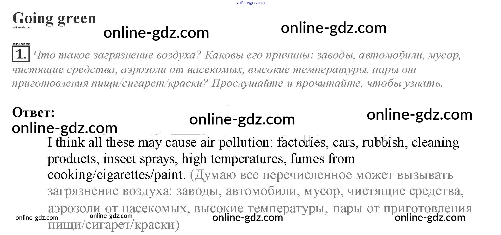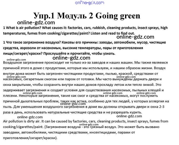 Готовые домашние задания по Английскому языку за 10 класс Учебник Афанасьева, Дули Spotlight 2015 - Going green Module 2 1
