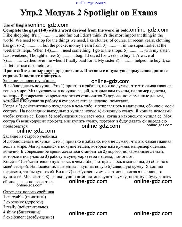 Готовые домашние задания по Английскому языку за 10 класс Учебник Афанасьева, Дули Spotlight 2015 - Spotlight on Exams Module 2 2
