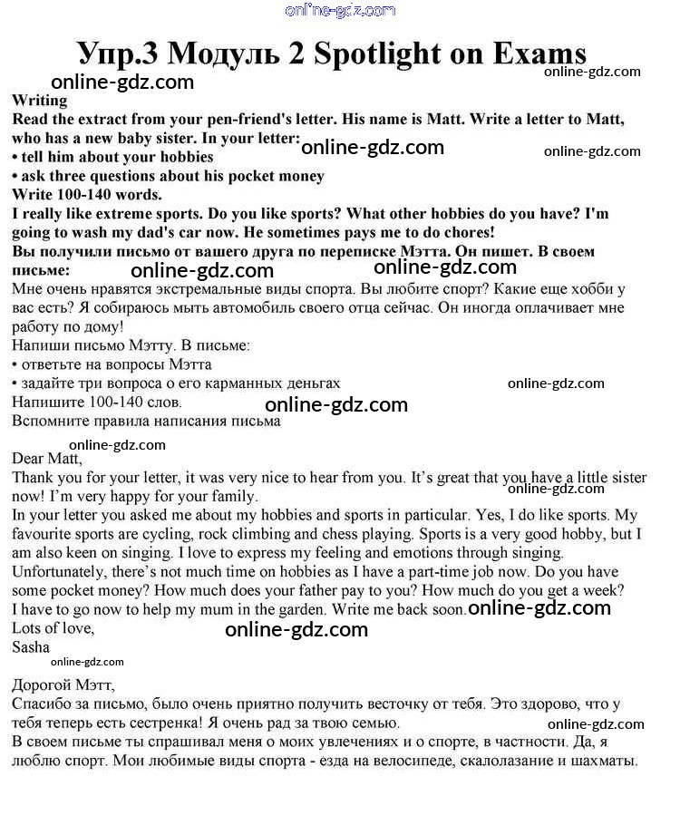 Готовые домашние задания по Английскому языку за 10 класс Учебник Афанасьева, Дули Spotlight 2015 - Spotlight on Exams Module 2 3