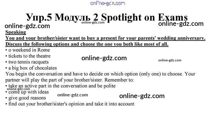 Готовые домашние задания по Английскому языку за 10 класс Учебник Афанасьева, Дули Spotlight 2015 - Spotlight on Exams Module 2 5