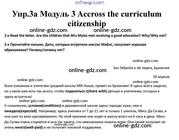 Готовые домашние задания по Английскому языку за 10 класс Учебник Афанасьева, Дули Spotlight 2015 - Accross the curriculum Citizenship Module 3 3a