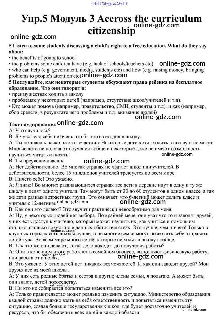 Готовые домашние задания по Английскому языку за 10 класс Учебник Афанасьева, Дули Spotlight 2015 - Accross the curriculum Citizenship Module 3 5