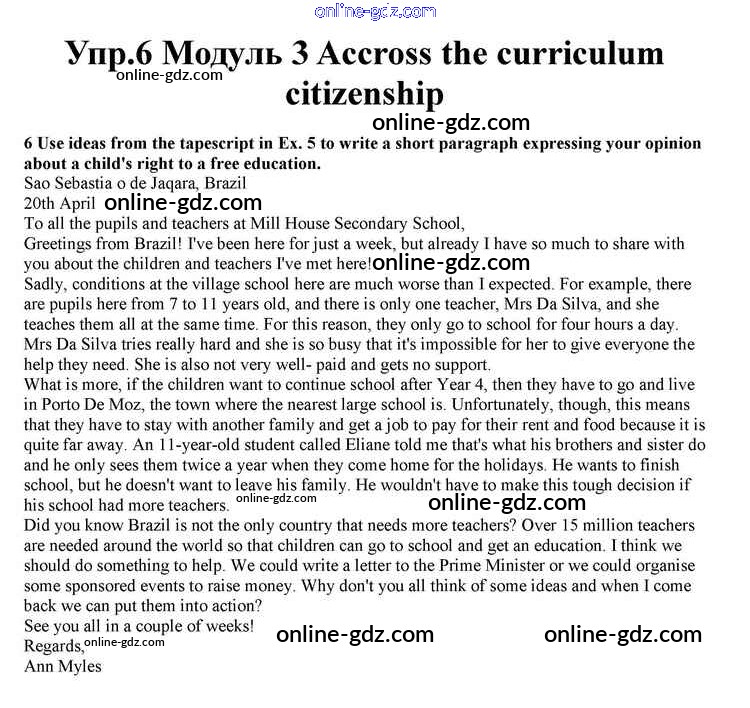 Готовые домашние задания по Английскому языку за 10 класс Учебник Афанасьева, Дули Spotlight 2015 - Accross the curriculum Citizenship Module 3 6