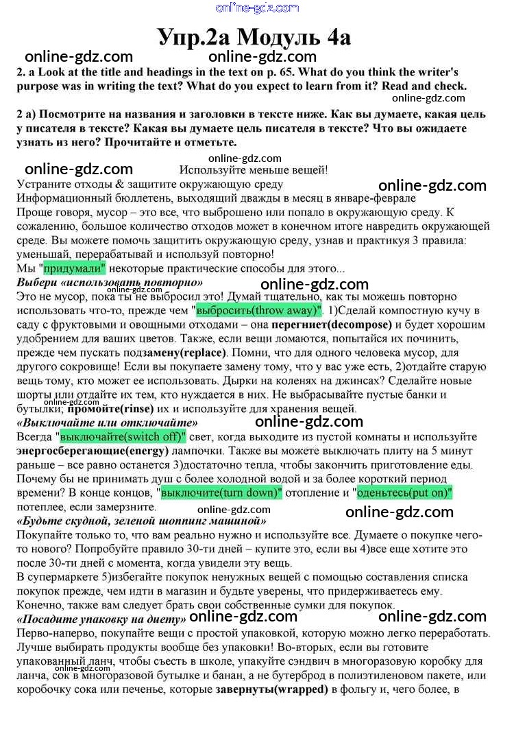 Готовые домашние задания по Английскому языку за 10 класс Учебник Афанасьева, Дули Spotlight 2015 - Часть 4a Module 4 2a