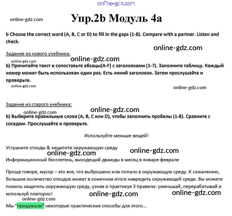 Готовые домашние задания по Английскому языку за 10 класс Учебник Афанасьева, Дули Spotlight 2015 - Часть 4a Module 4 2b