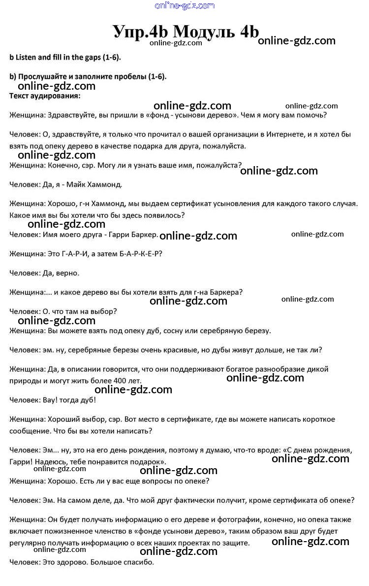 Готовые домашние задания по Английскому языку за 10 класс Учебник Афанасьева, Дули Spotlight 2015 - Часть 4b Module 4 4b