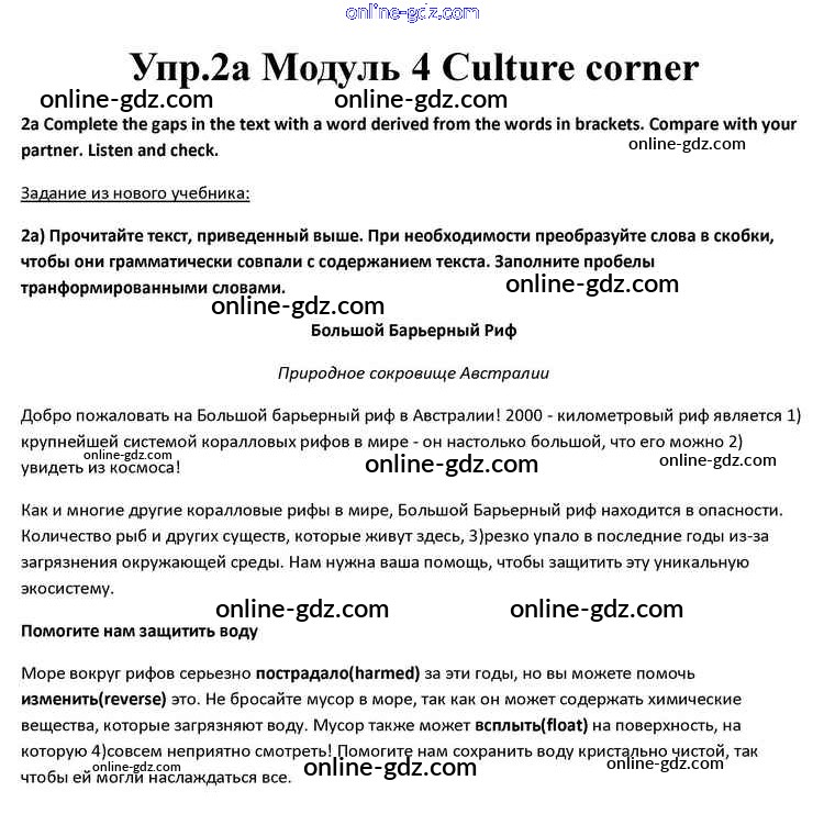 Готовые домашние задания по Английскому языку за 10 класс Учебник Афанасьева, Дули Spotlight 2015 - Culture corner Module 4 2a