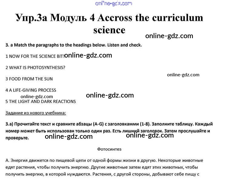 Готовые домашние задания по Английскому языку за 10 класс Учебник Афанасьева, Дули Spotlight 2015 - Accross the curriculum Science Module 4 3a