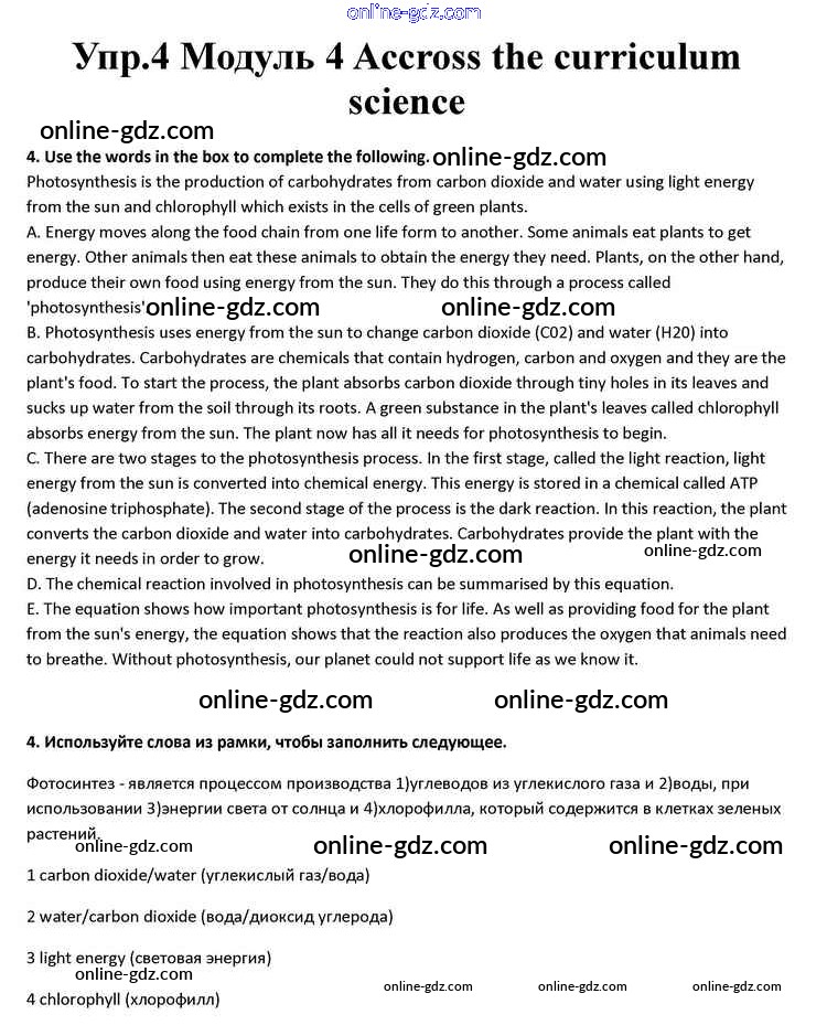 Готовые домашние задания по Английскому языку за 10 класс Учебник Афанасьева, Дули Spotlight 2015 - Accross the curriculum Science Module 4 4
