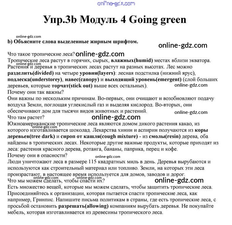 Готовые домашние задания по Английскому языку за 10 класс Учебник Афанасьева, Дули Spotlight 2015 - Going green Module 4 3b