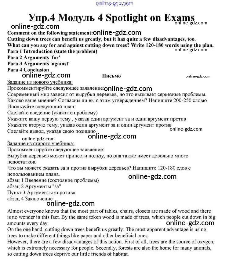 Готовые домашние задания по Английскому языку за 10 класс Учебник Афанасьева, Дули Spotlight 2015 - Spotlight on Exams Module 4 4