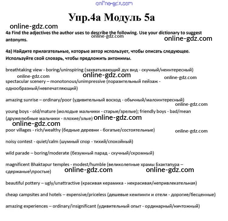 Готовые домашние задания по Английскому языку за 10 класс Учебник Афанасьева, Дули Spotlight 2015 - Часть 5a Module 5 4a