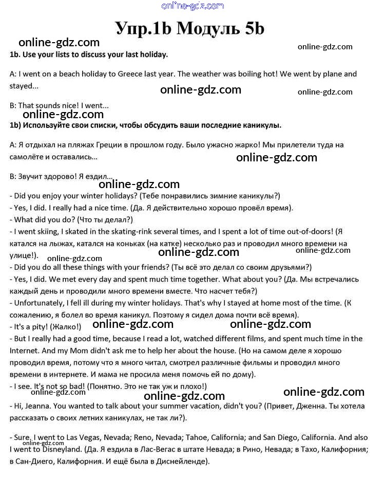 Готовые домашние задания по Английскому языку за 10 класс Учебник Афанасьева, Дули Spotlight 2015 - Часть 5b Module 5 1b