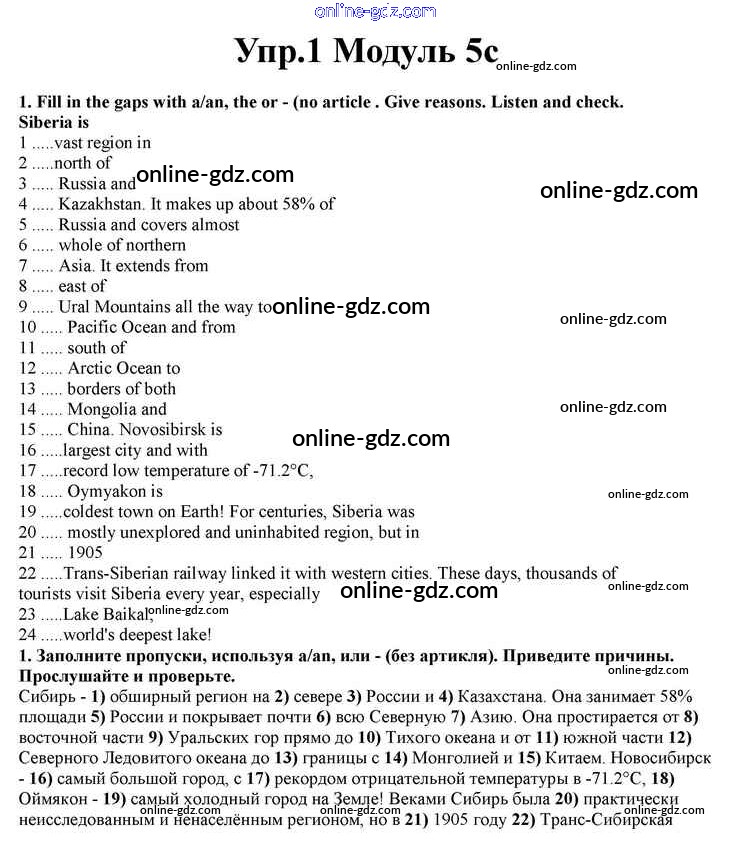 Готовые домашние задания по Английскому языку за 10 класс Учебник Афанасьева, Дули Spotlight 2015 - Часть 5c Module 5 1