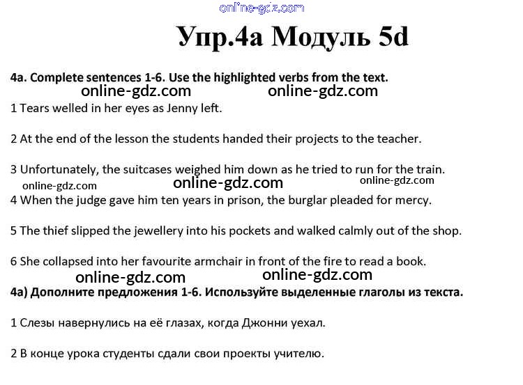 Готовые домашние задания по Английскому языку за 10 класс Учебник Афанасьева, Дули Spotlight 2015 - Часть 5d Module 5 4a