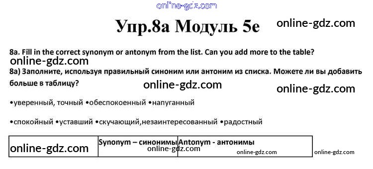 Готовые домашние задания по Английскому языку за 10 класс Учебник Афанасьева, Дули Spotlight 2015 - Часть 5e Module 5 8a