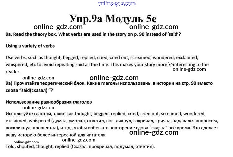 Готовые домашние задания по Английскому языку за 10 класс Учебник Афанасьева, Дули Spotlight 2015 - Часть 5e Module 5 9a