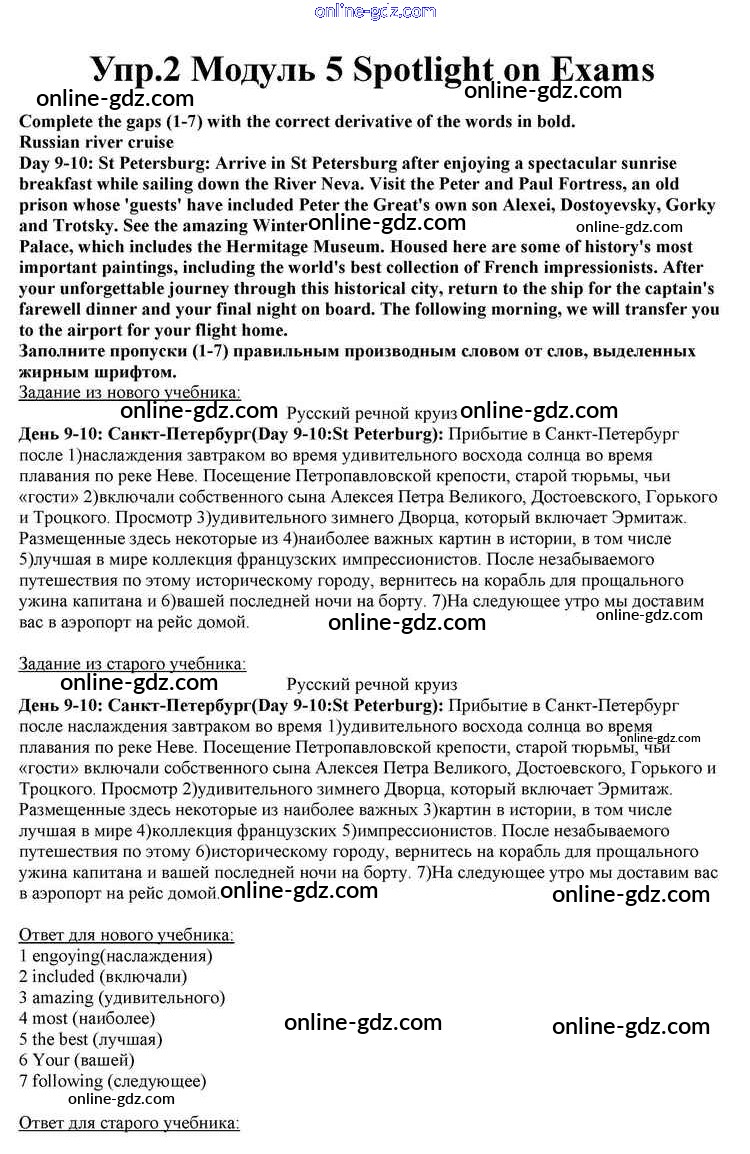 Готовые домашние задания по Английскому языку за 10 класс Учебник Афанасьева, Дули Spotlight 2015 - Spotlight on Exams Module 5 2