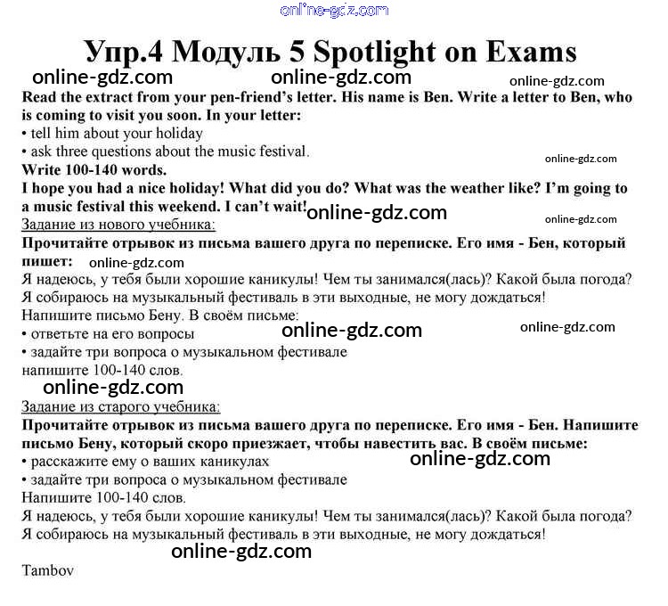 Готовые домашние задания по Английскому языку за 10 класс Учебник Афанасьева, Дули Spotlight 2015 - Spotlight on Exams Module 5 4