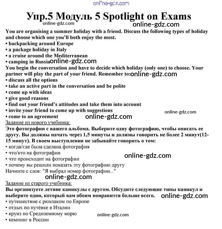 Готовые домашние задания по Английскому языку за 10 класс Учебник Афанасьева, Дули Spotlight 2015 - Spotlight on Exams Module 5 5
