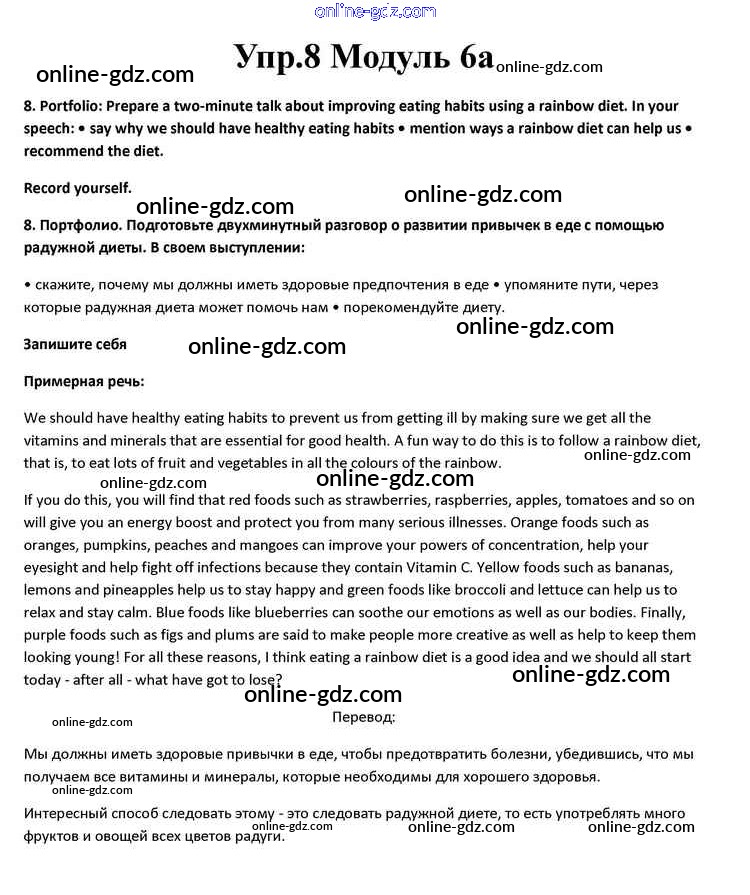 Готовые домашние задания по Английскому языку за 10 класс Учебник Афанасьева, Дули Spotlight 2015 - Часть 6a Module 6 8