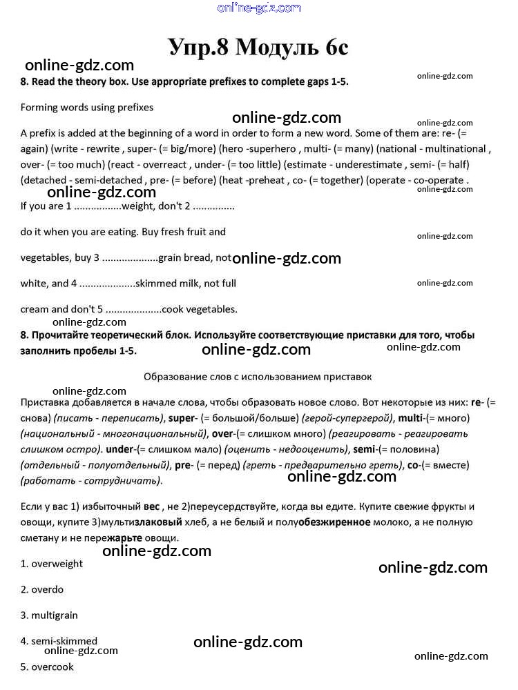 Готовые домашние задания по Английскому языку за 10 класс Учебник Афанасьева, Дули Spotlight 2015 - Часть 6c Module 6 8