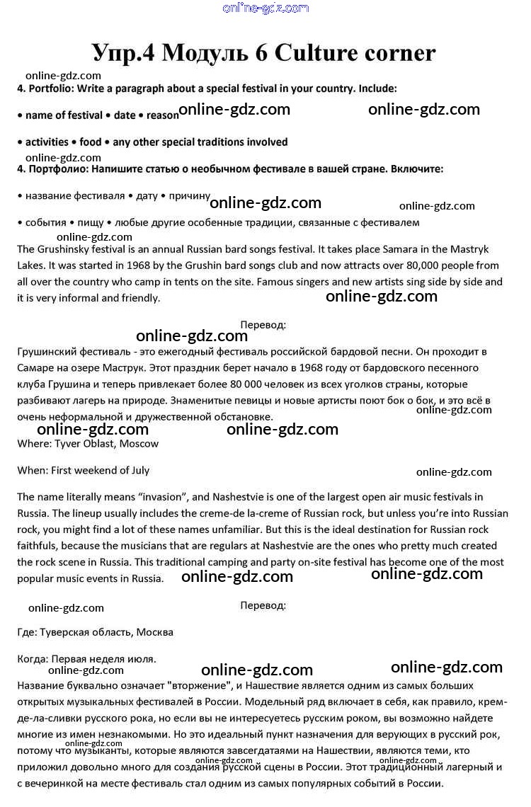 Готовые домашние задания по Английскому языку за 10 класс Учебник Афанасьева, Дули Spotlight 2015 - Culture corner Module 6 4