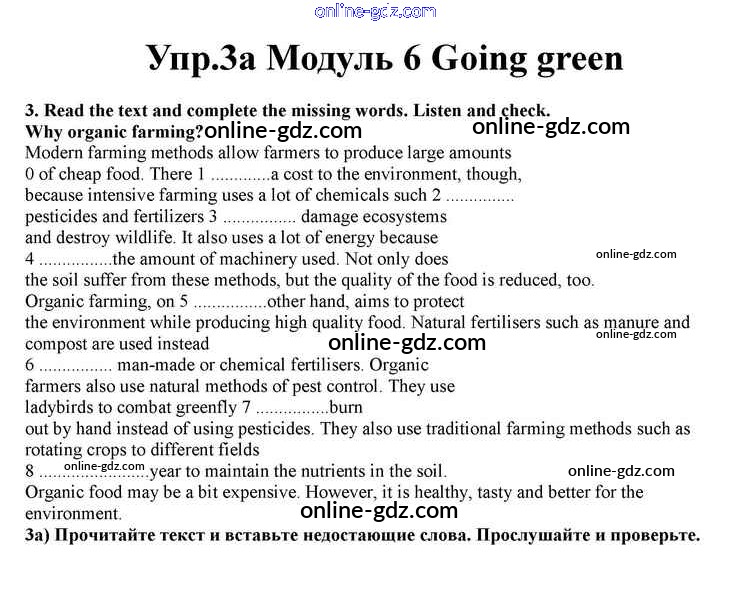Готовые домашние задания по Английскому языку за 10 класс Учебник Афанасьева, Дули Spotlight 2015 - Going green Module 6 3a