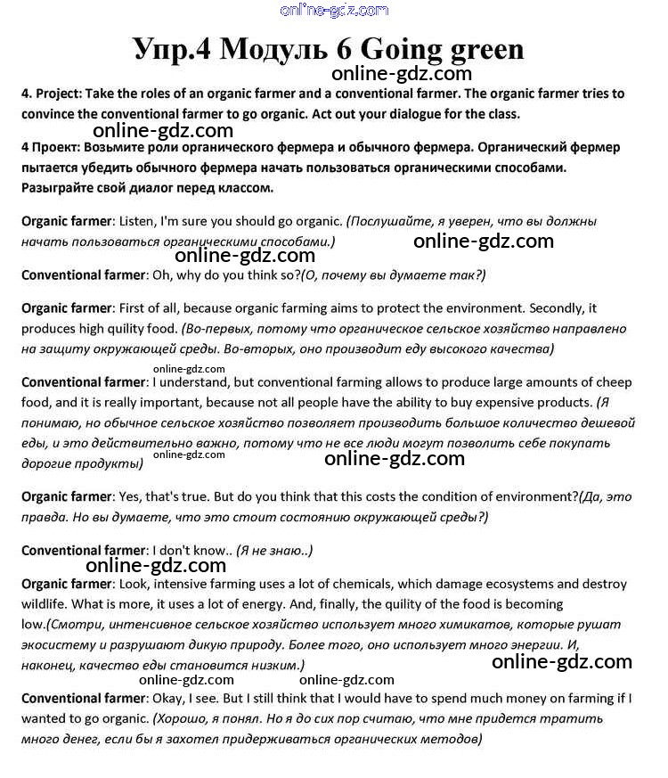 Готовые домашние задания по Английскому языку за 10 класс Учебник Афанасьева, Дули Spotlight 2015 - Going green Module 6 4