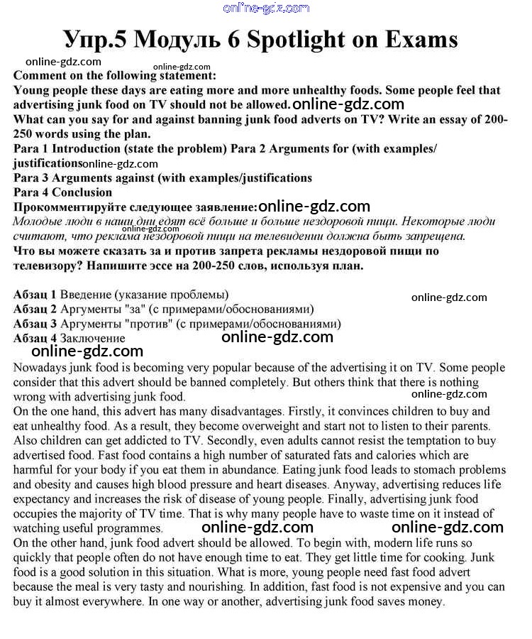Готовые домашние задания по Английскому языку за 10 класс Учебник Афанасьева, Дули Spotlight 2015 - Spotlight on Exams Module 6 5
