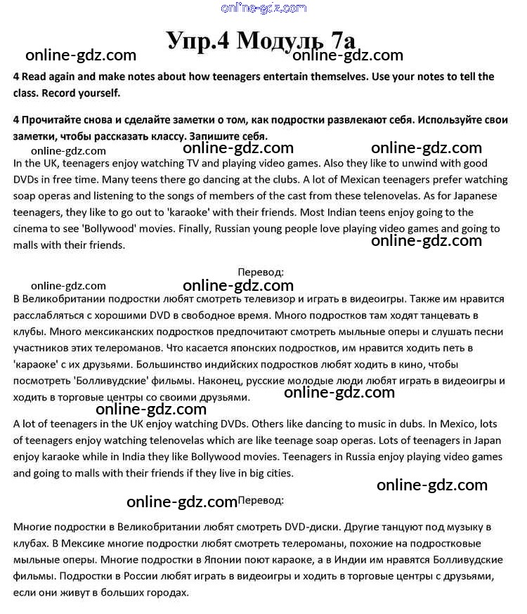 Готовые домашние задания по Английскому языку за 10 класс Учебник Афанасьева, Дули Spotlight 2015 - Часть 7a Module 7 4