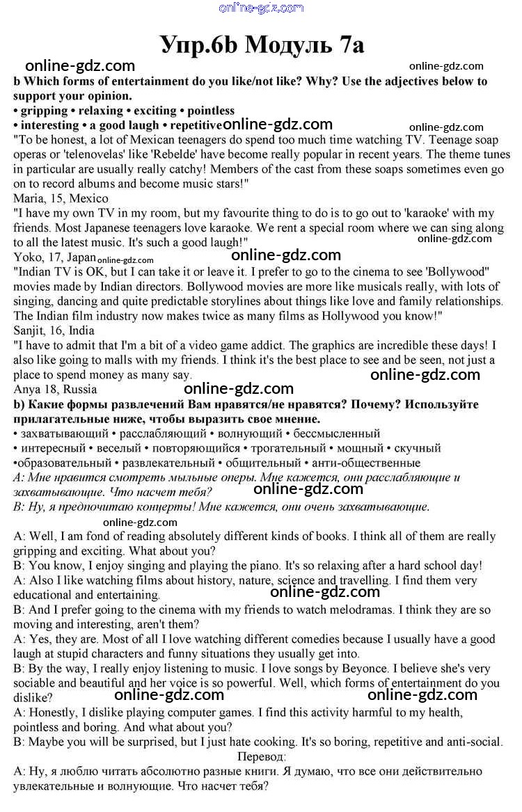 Готовые домашние задания по Английскому языку за 10 класс Учебник Афанасьева, Дули Spotlight 2015 - Часть 7a Module 7 6b