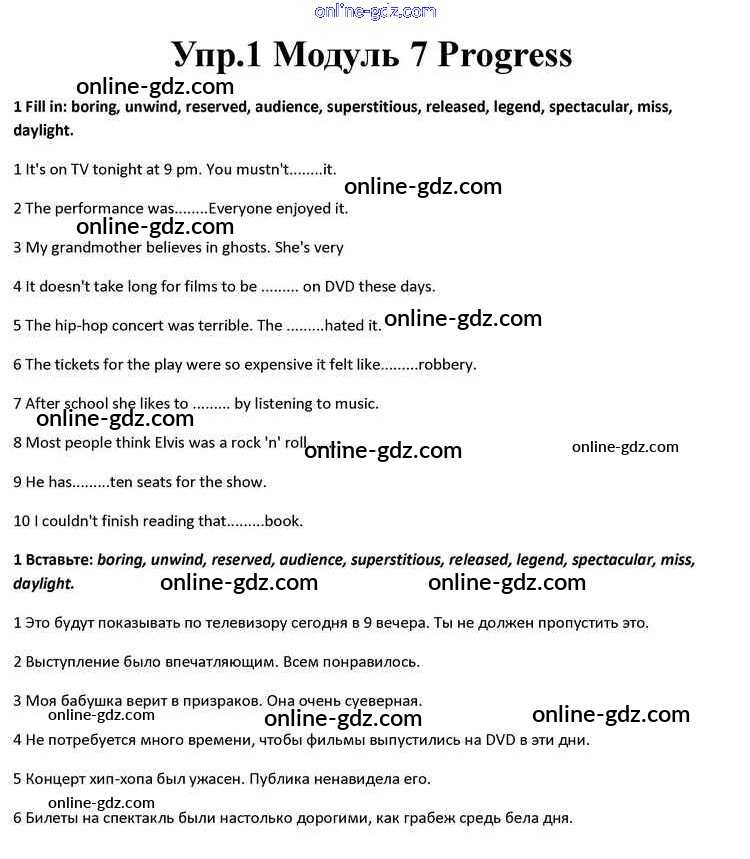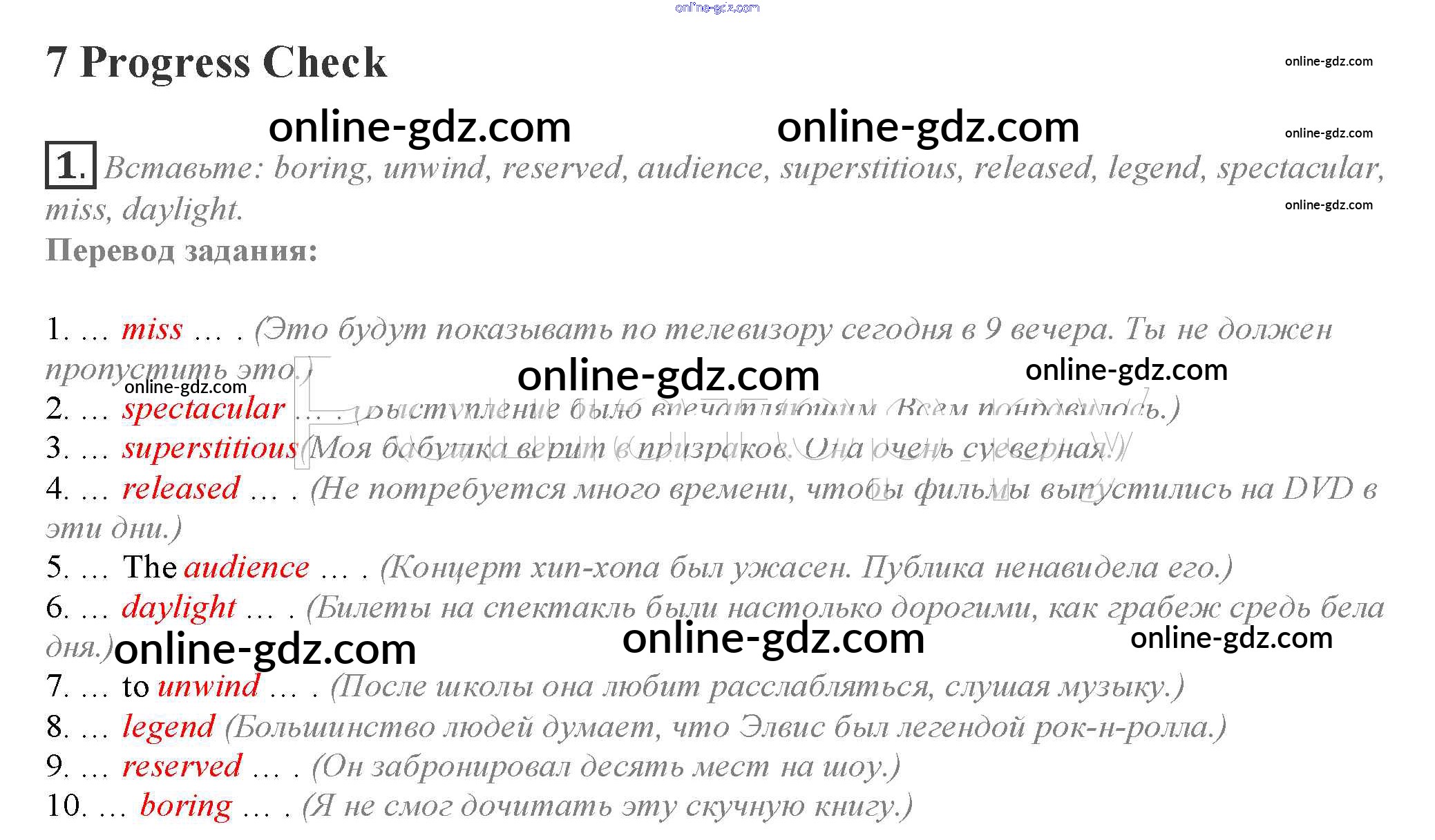 Готовые домашние задания по Английскому языку за 10 класс Учебник Афанасьева, Дули Spotlight 2015 - Progress Check Module 7 1