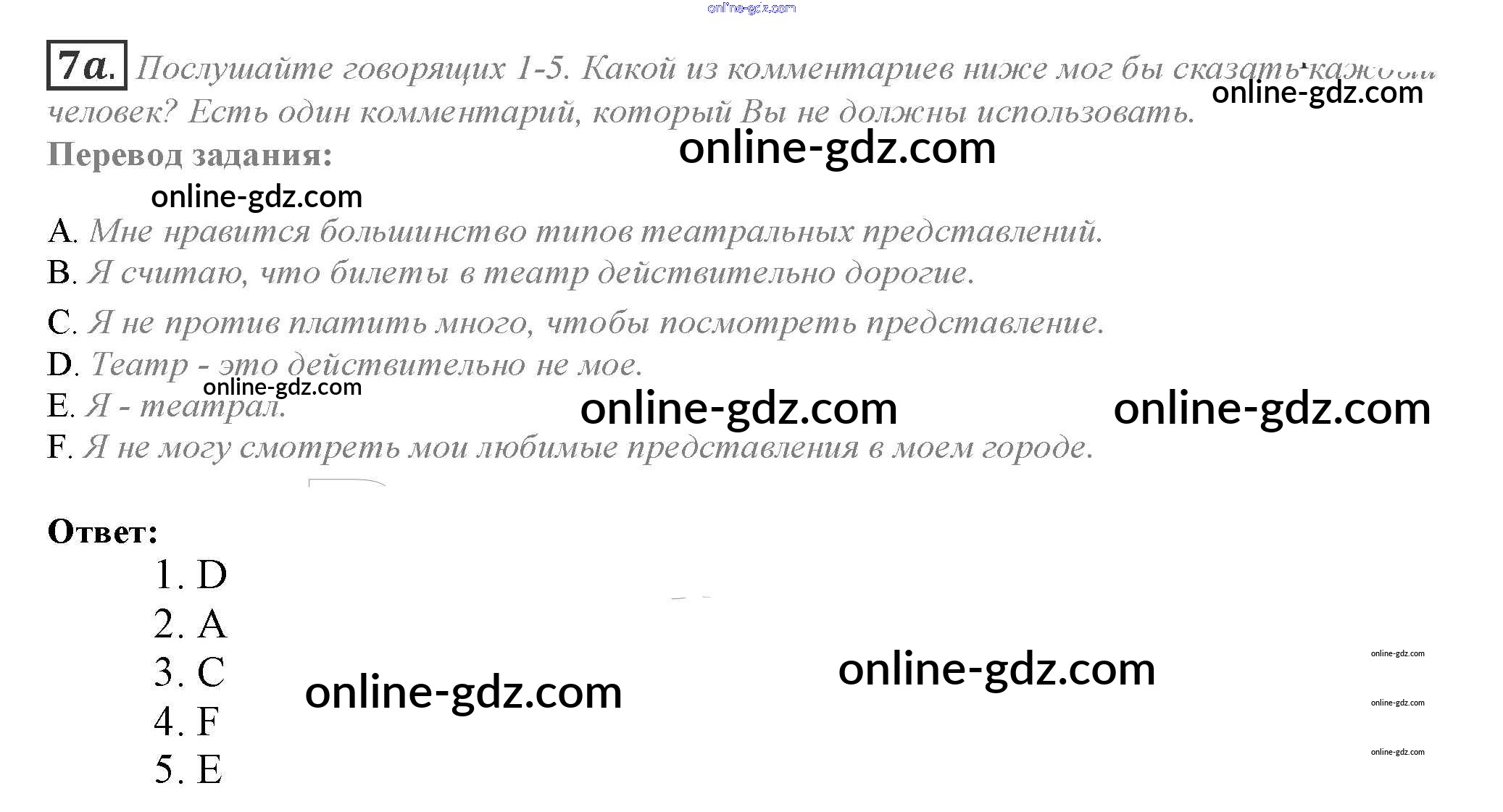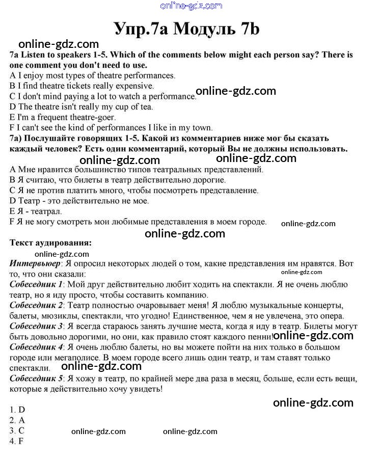 Готовые домашние задания по Английскому языку за 10 класс Учебник Афанасьева, Дули Spotlight 2015 - Часть 7b Module 7 7a