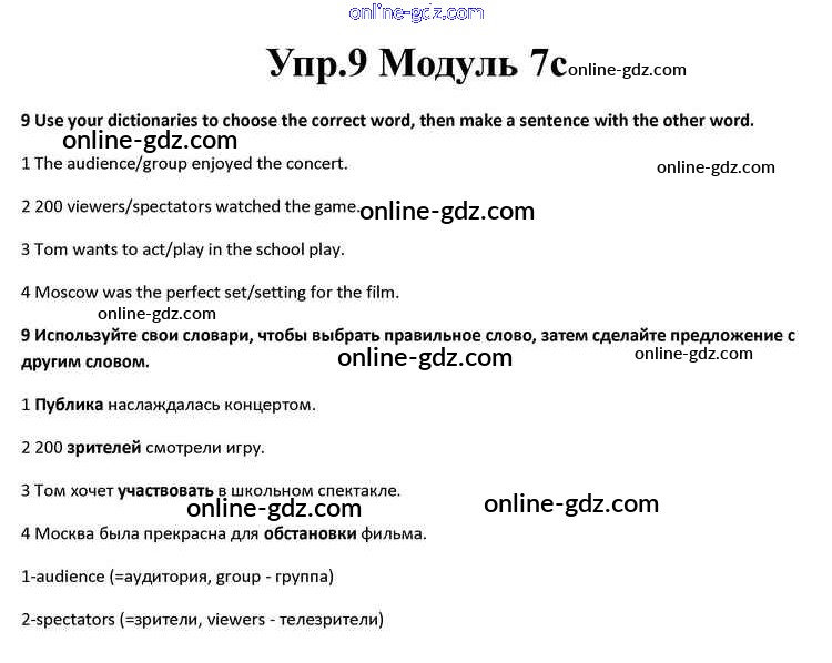Готовые домашние задания по Английскому языку за 10 класс Учебник Афанасьева, Дули Spotlight 2015 - Часть 7c Module 7 9