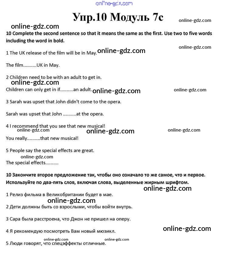 Готовые домашние задания по Английскому языку за 10 класс Учебник Афанасьева, Дули Spotlight 2015 - Часть 7c Module 7 10