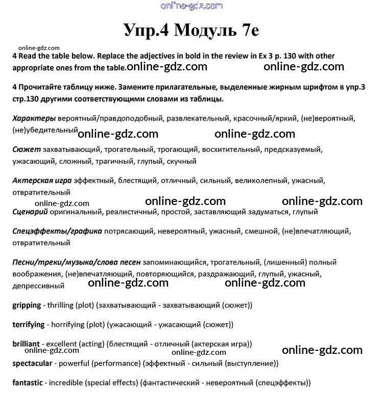 Готовые домашние задания по Английскому языку за 10 класс Учебник Афанасьева, Дули Spotlight 2015 - Часть 7e Module 7 4