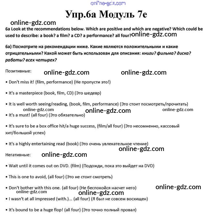 Готовые домашние задания по Английскому языку за 10 класс Учебник Афанасьева, Дули Spotlight 2015 - Часть 7e Module 7 6a