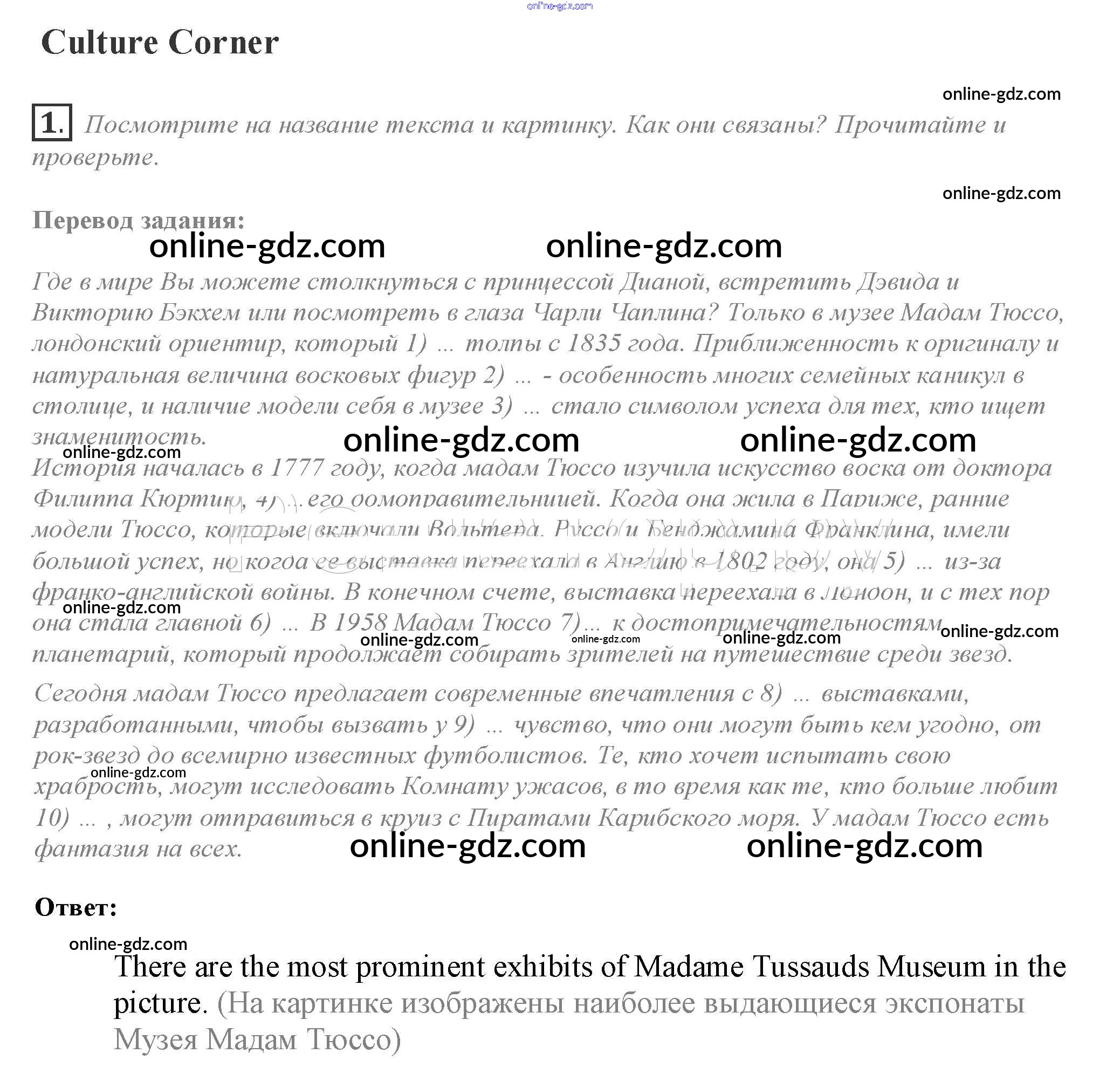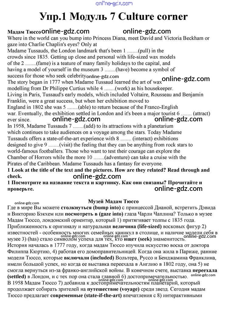 Готовые домашние задания по Английскому языку за 10 класс Учебник Афанасьева, Дули Spotlight 2015 - Culture corner Module 7 1