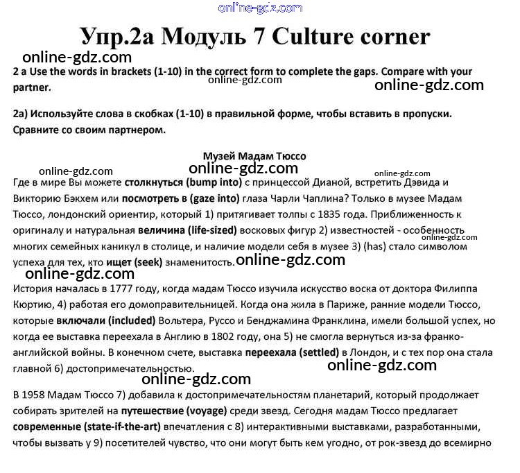 Готовые домашние задания по Английскому языку за 10 класс Учебник Афанасьева, Дули Spotlight 2015 - Culture corner Module 7 2a