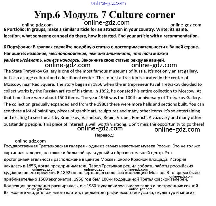 Готовые домашние задания по Английскому языку за 10 класс Учебник Афанасьева, Дули Spotlight 2015 - Culture corner Module 7 6