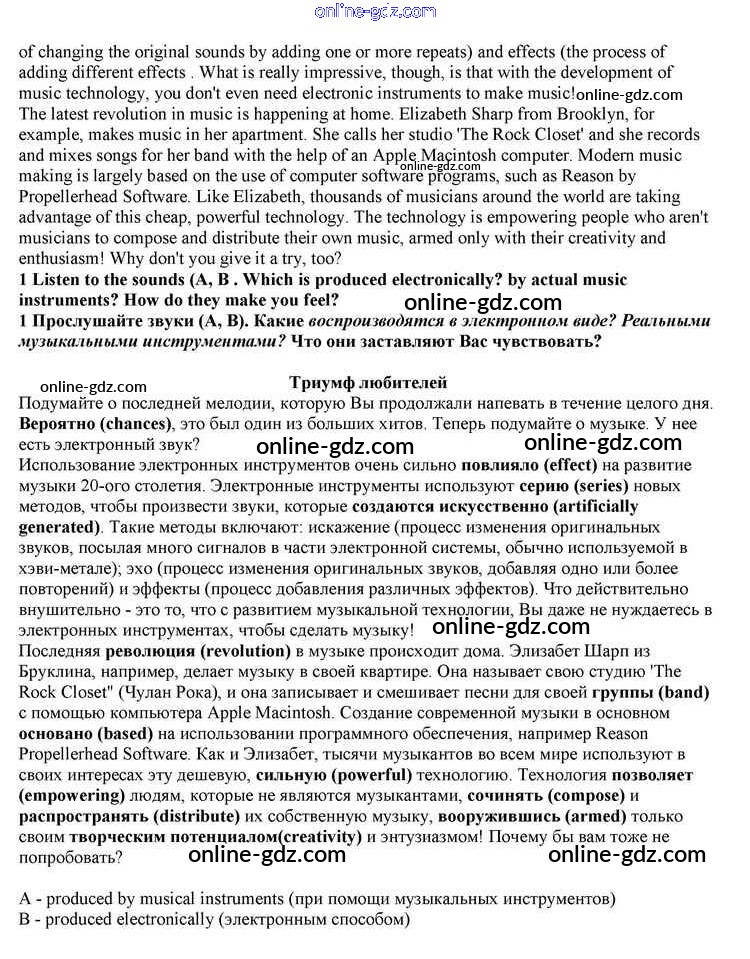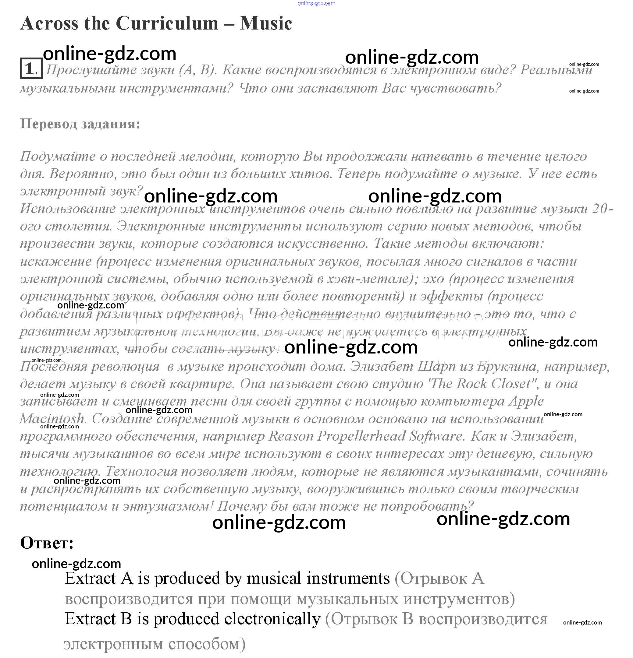 Готовые домашние задания по Английскому языку за 10 класс Учебник Афанасьева, Дули Spotlight 2015 - Accross the curriculum Music Module 7 1