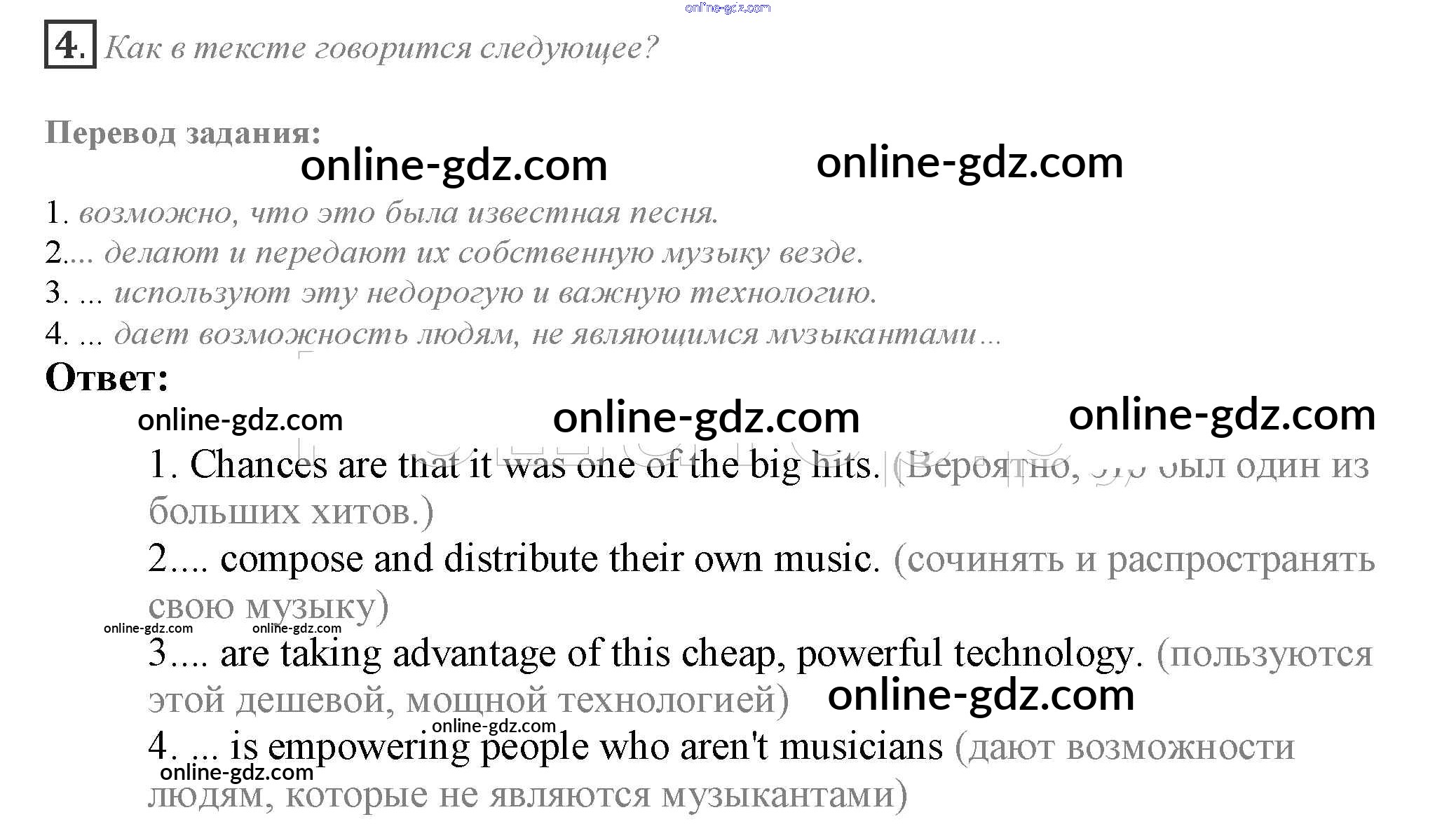 Готовые домашние задания по Английскому языку за 10 класс Учебник Афанасьева, Дули Spotlight 2015 - Accross the curriculum Music Module 7 4